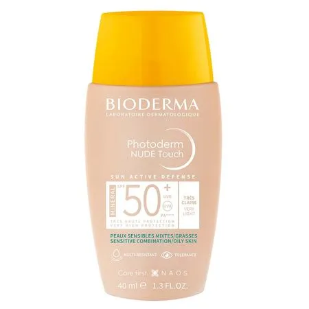 Photoderm Nude Touch FPS 50+ é o 1º protetor solar 100% físico especialmente desenvolvido para peles oleosas. Sua fórmula bifásica oferece o melhor da fotoproteção 100% mineral, garantindo um verdadeiro escudo protetor fotoestável por 08h¹ mesmo em condições extremas², associado ao cuidado diário contra os sinais da pele oleosa. Dia após dia, Photoderm Nude Touch FPS 50+ reduz duradouramente a oleosidade através da patente Fluidactiv™; afina a textura da pele com a ação do ácido salicílico; e ainda previne o surgimento de cravos e espinhas, graças ao ativo capriloil glicina. Textura inovadora: Fórmula bifásica que associa filtros e pigmentos 100% minerais à fase líquida, reunindo o melhor da fotoproteção 100% física ao cuidado antioleosidade diário. Benefícios: Ao agitar, ambas fases se unem para criar uma textura ultra leve e fluida com espalhabilidade perfeita, cobertura natural e toque aveludado que não pesa e não derrete ao longo do dia. Aplique a partir de 8 gotas para garantir os 8 benefícios de Photoderm Nude Touch.